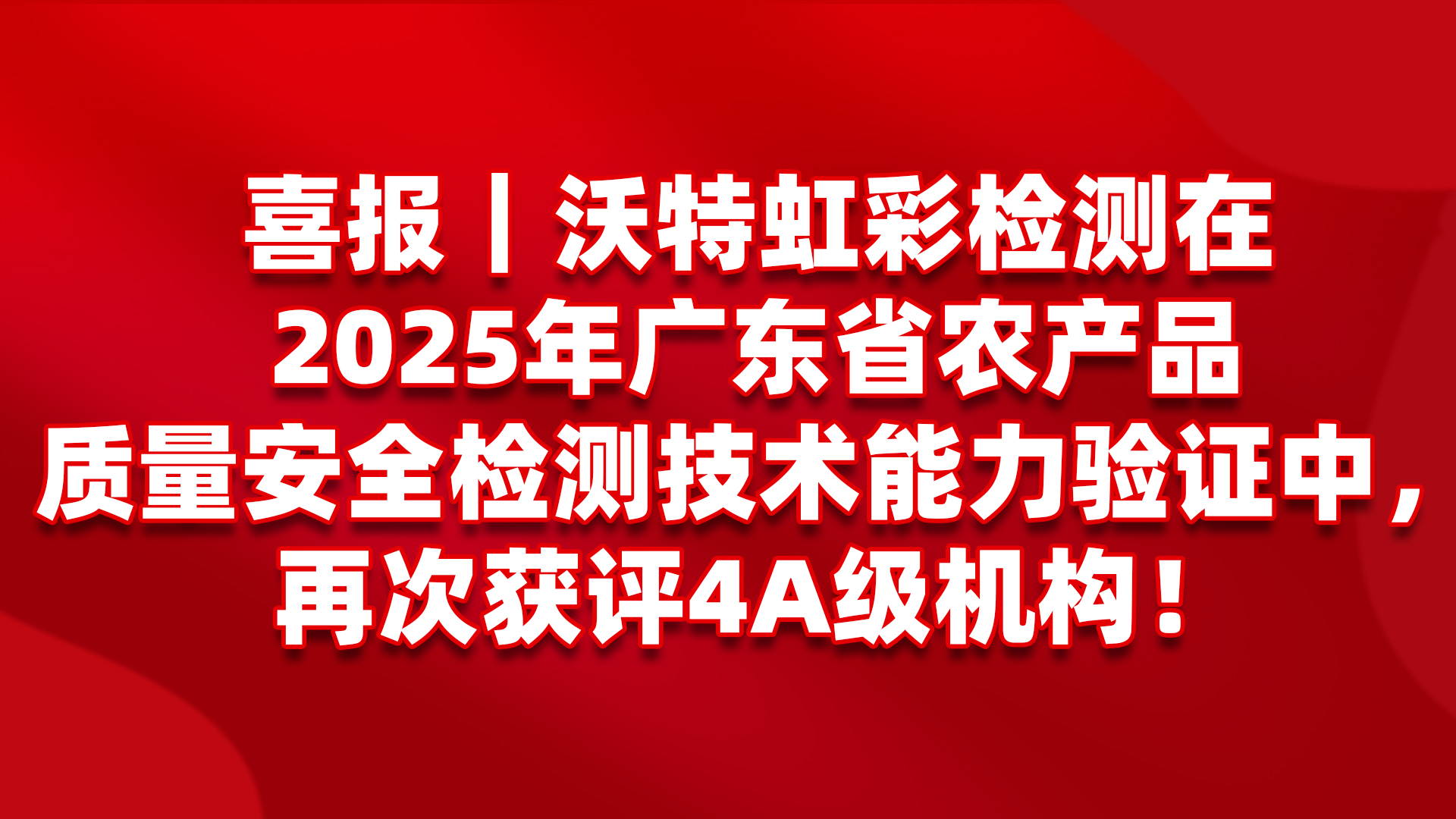 沃特虹彩检测在广东省农业农村厅组织的2025年全省农产品质量安全检测技术能力验证活动中被评为4A级机构! 自2023至2025年,深圳市沃特虹彩检测技术有限公司......